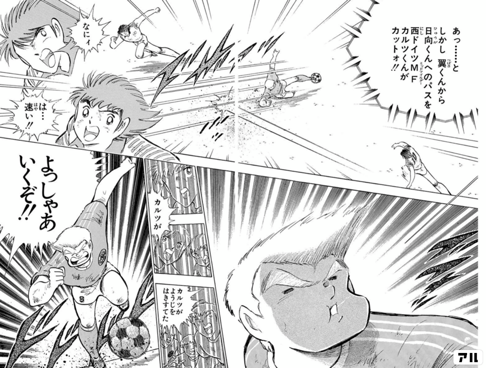 あっ しかし 翼くんから日向くんへのパスを 西ドイツmfカルツくんがカットォ なにィ は 速い カルツが カルツがようじをはきすてた よっしゃあ いくぞ キャプテン翼 キャプ翼 アル